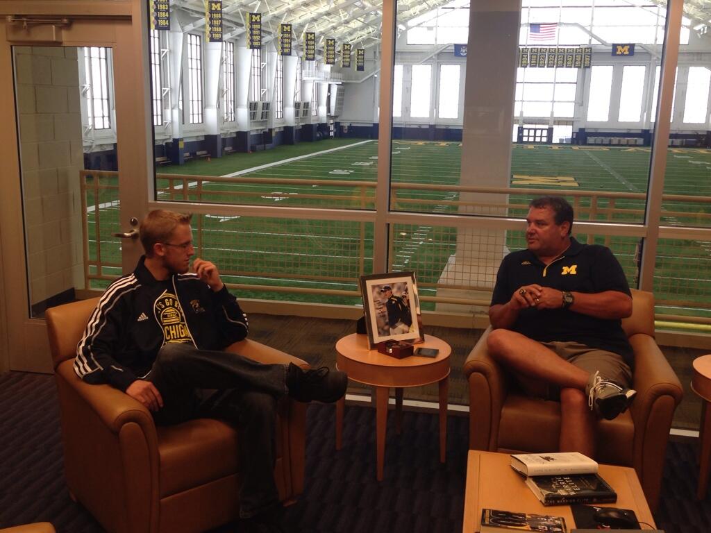 Stephen's day was a special one and included many things including: a tour of Michigan's facilities, a film session with U-M coaches, a one-on-one meeting head coach Brady Hoke, lunch with quarterback Devin Gardner and linebacker Jake Ryan, meeting Dave Brandon, meeting Desmond Howard, announcing his college choice by picking a Michigan hat over MSU, ND and OSU and putting on a helmet and getting to touch the banner with his new teammates.